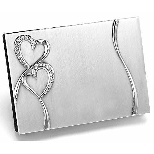 All Things Weddings Personalized and Engraved Silver Plated Petite Guest Book, Twin Hearts Sparkling Love