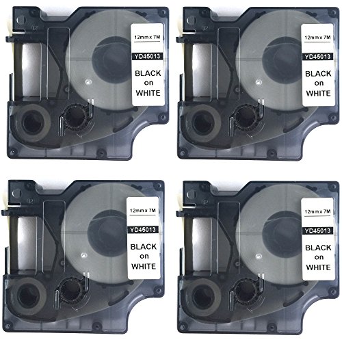 NEOUZA 4PK Compatible for DYMO D1 Standard Label Tape 1/2" x 23' 12mm x 7m (Black on White 45013 S0720530)