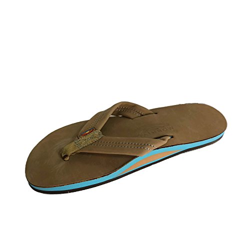 Rainbow Flip Flops Men's Premier Blue Dark Brown Leather (Large)