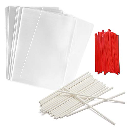FreshBags | Clear Treat & Favor Bags | Ties & Lollipop Sticks Included | For Cake Pops, Candy, Gifts, Wedding or Party | Food Safe Plastic | Stronger Than Cellophane | 1.5 Mils Thickness (4" x 6")