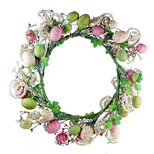 Gerson Decorative Speckled and Striped Floral Easter Egg Wreath