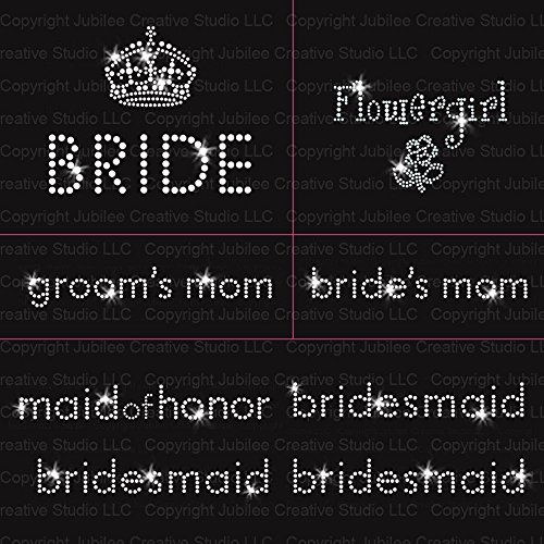 Classic Wedding Pack 8 Pc Bride Iron on Rhinestone Crystal T-shirt Transfers By Jubilee Rhinestones