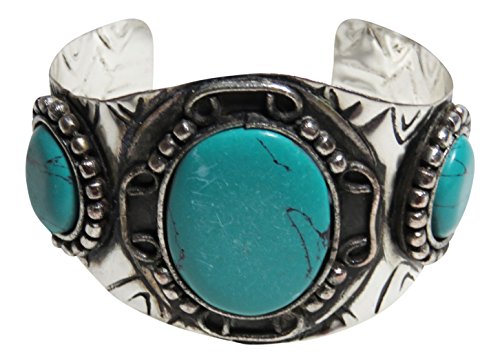 Silver Tone Metal Turquoise Bead Fashion Cuff Bracelet Western