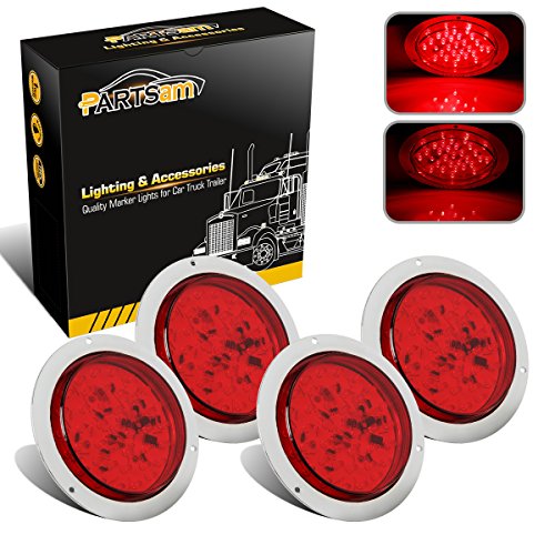 Partsam 4 Inch Round Red Led Trailer Tail Lights 40 Diodes Flange Mount Waterproof 12V Rear Stop Turn Tail Brake Running Marker Lights 3 Wires Sealed for Boat RV Trailer Truck (Pack of 4)