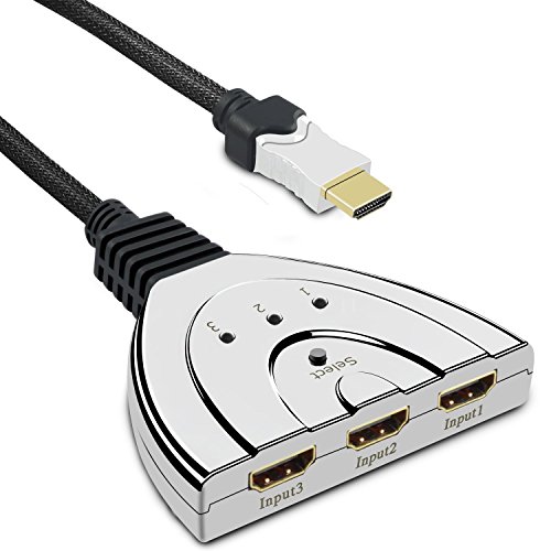 Safebao H1001 3 Port Intelligent HDMI Switch 3*1 HDMI Splitter Support 3D, Full HD, 1080p, HDMI Switcher Selector/Converter Box with Nylon Pigtail HDMI Cable (Ver 1.3 1.8FT)