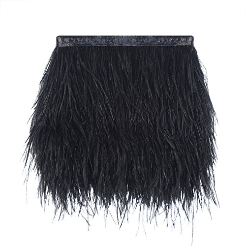 Ostrich Feathers Trims Fringe with Satin Ribbon Tape for Dress Sewing Crafts Costumes Decoration Pack of 2 Yards (Gold Yellow
