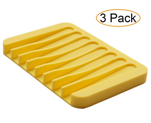 MelonBoat 3 Pack Silicone Shower Soap Dish Set, Concave Soap Saver Holder, Rectangle Yellow