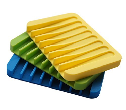 MelonBoat 3 Pack Silicone Shower Soap Dish Set, Concave Soap Saver Holder, Rectangle 3 Color