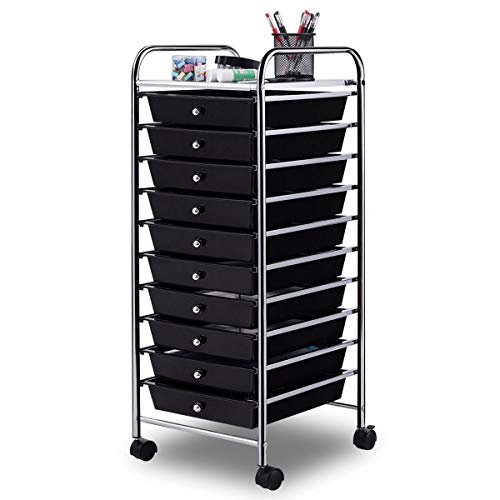 Giantex 10 Drawer Rolling Storage Cart Scrapbook Paper Office School Organizer (Black)