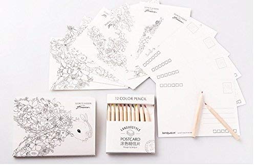 Coloring Greeting Cards, Set of 12 Elegant Cards to Color and Share for All Occasion, 4.2 x 5.8 inch, Plus Pack of 12 Color Pencils and One Coloring Blank Notebook