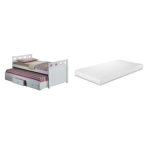 Broyhill Kids Breckenridge Captain's Bed with Trundle Bed and Drawers + Storkcraft Premium Comfort 5-inch Foam Twin Mattress, White