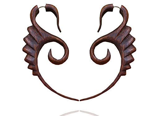 Ethnic Arts India Women's Tribal Handcarved Wooden Wings Design Wood Fake Gauge Earring Brown
