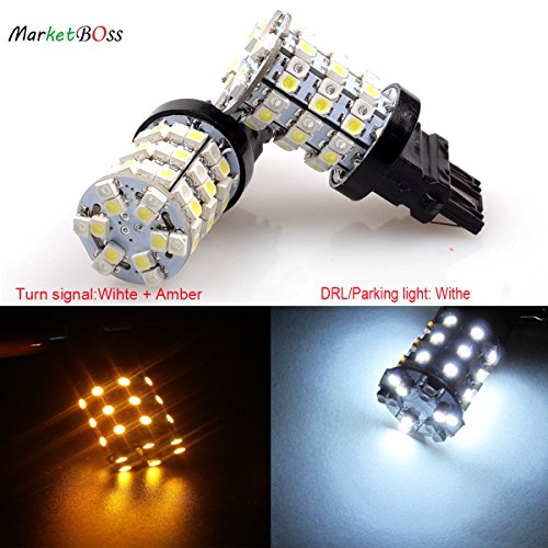 MBS 2PCS White/Amber Dual Color 3157 60SMD Switchback LED Bulbs for Turn Signal Lights