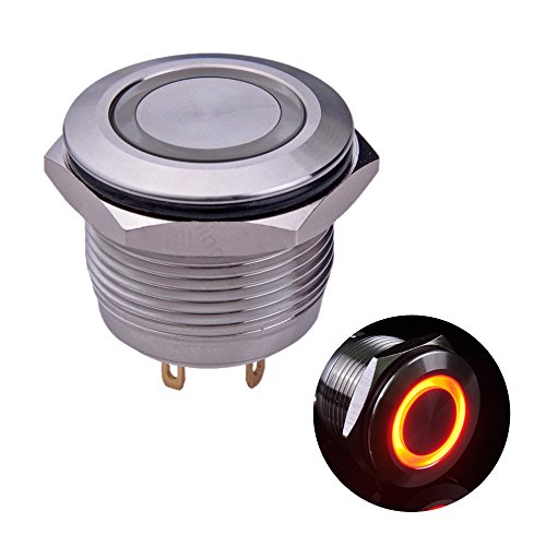 Ulincos Momentary Push Button Switch U19D1 1NO SPST Silver Stainless Steel Shell with Red LED Ring Suitable for 19mm 3/4" Mounting Hole Pack with a Resistor