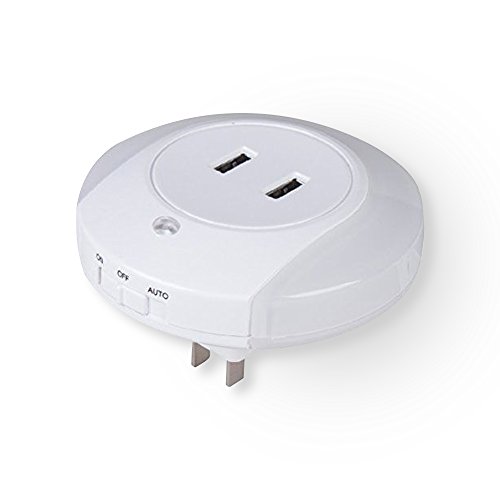 LED Night Light Wall Plate with Dual USB Ports and Dusk to Dawn Sensor