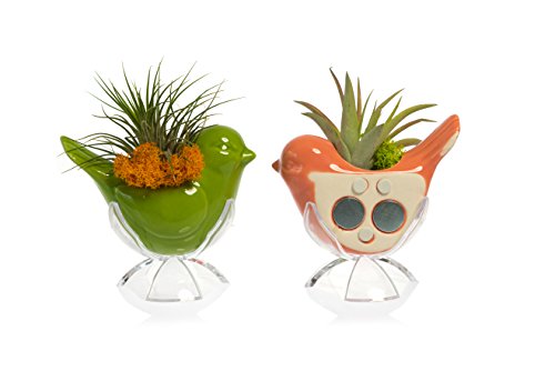 Hinterland Trading Magnetic Bird Wall Planters with Air Plants and Colored Moss (Coral and Green)