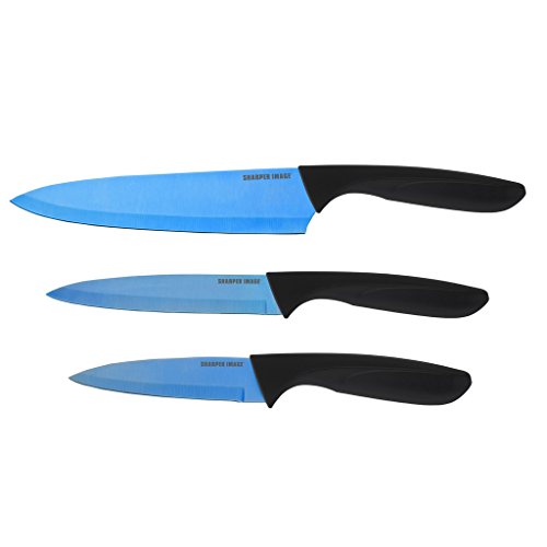The Sharper ImageĀ® Non-Stick Blue & Black Three-Piece Paring, Utility & Chef Knife Set (3.5", 5", 8" Knives )