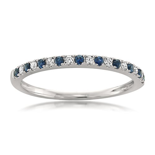 14k White Gold Round Diamond & Blue Sapphire Micro-Pave Bridal Wedding Band Ring (1/4 cttw, H-I, VS2-SI1)
