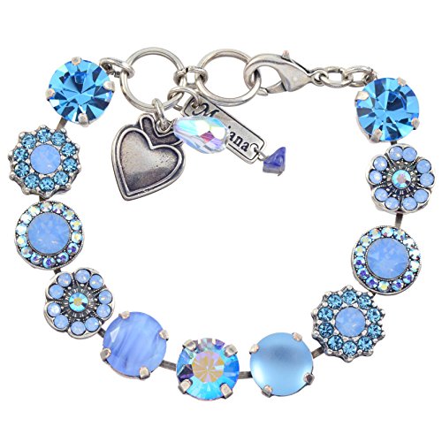 Mariana "Periwinkle Large Flower Design Tennis Bracelet, Silver Plated with Blue Crystal, 8" 4084 1343