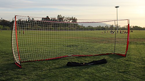 PowerNet Soccer Goal 18.5ft x 6.5ft Portable Bow Style Net | Instant Full Size Net | Collapsible Metal Base | Durable Vertical Posts | Quick Setup Easy Folding Storage| 1 Goal + 1 Wheeled Carrying Bag