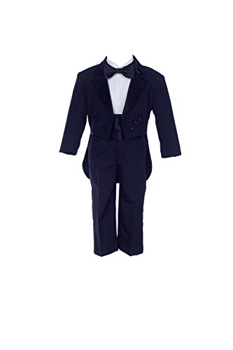 Black Boy Teen Tuxedo Suit with Tail Formal 5-Piece Set Wedding Pageant Party