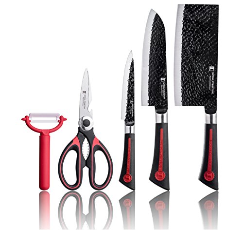 Imperial Collection IM-KPW1 LG 6 Piece Knife Set, Includes 2-in-1 Scissor/Bottle Cap Opener, Peeler and Storage Case - Coating Kitchen Knives (Black/Red)