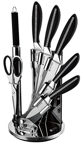 Imperial Collection IM-KST7 RED Stainless Steel Kitchen Cutlery Knife Set with Knife Block and Embossed Non-Stick Coating