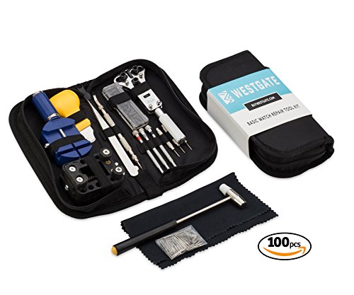 Westgate® Watch Repair Tool Kit with FREE Microfiber Cleaning Cloth and 100 pc Replacement Watch Link Strap Spring Pins