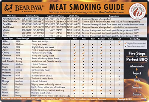 Bear Paws Meat Smoking Guide Magnet - Quick Reference Smoking Chart - Wood Chips - Wood Pellets - Time and Temperature
