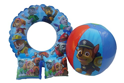 Paw Patrol Inflatable 20" Beach Ball, Rings Plus Arm Floats Play Set
