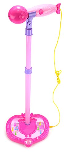 Princess Superstar Children's Kid's Toy Stand Up Microphone Play Set w/ Microphones, Built In Speaker, Adjustable Height, Line In Input