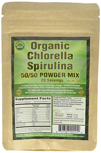 Organic Chlorella AND Spirulina Powder - With Chlorella/Spirulina Growth Factor - Product of Taiwan - Cleanest Possible Source (60 Grams)