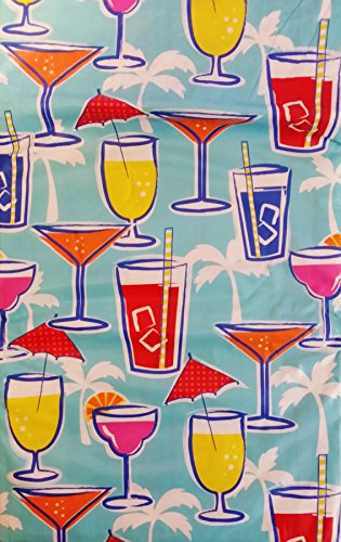 Colorful Cocktails on Ocean Breeze Vinyl Flannel Back Tablecloth with Zipper Umbrella Hole (52" x 70" Oblong)