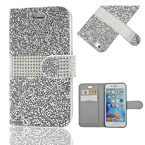 iPhone 6S Plus Case, Seedan Luxury Diamond Clutch Design PU Leather Wallet Purse Case with Card Slots for iPhone 6S/6 Plus Silver