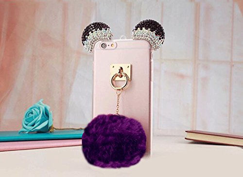 Iphone 6/6s Case,Jesiya Super Cute 3D Crystal Shiny Diamond Gradient Bear/Mouse Ears With Fur Hair Plush Ball Tassel Case Cover For Iphone 6/6s 4.7"