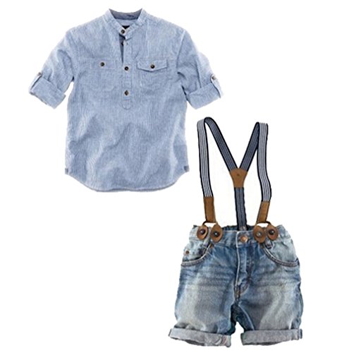 Little Boys Handsome Shirt+Denim Overalls Short Sleeve 2 Pieces Set 5T Light Blue