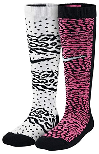 Nike Girls' Graphic Cotton Knee High Socks 2Pk-Pink/White/Black-Medium