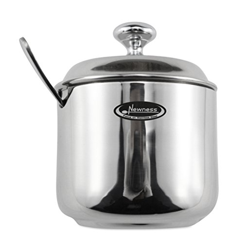 Newness Stainless Steel Sugar Bowl with Lid and Sugar Spoon for Home, Cylinder Shape, 8.44 Ounces(250 Milliliter)