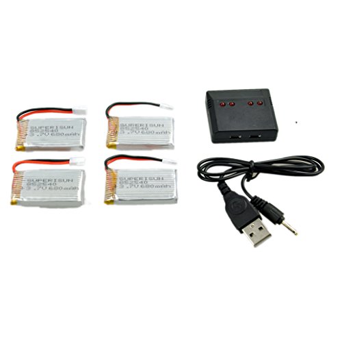 Superisun 3.7V 680mAh Lipo Battery (4PCS) with 4 in 1 X4 Battery Charger for Syma X5 X5C Parts