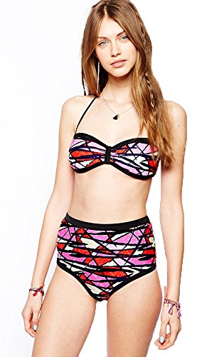 Vilania Women Sexy Retro Geometric High Waist Bikini Swimsuit Mix Colour TXZ9010-Pink-XL