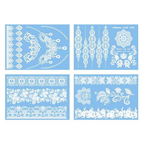 COKOHAPPY 4 Sheets White Lace Wedding Bridal Butterfly Mandala Flower Look Real Flash Temporary Tattoo