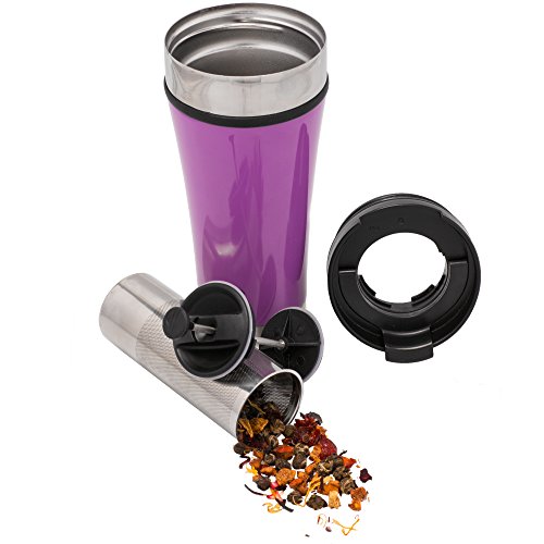 Tea Infuser Mug - 16oz Travel Tumbler - Store or Steep Tea Inside - Lavender