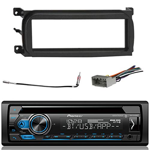 Pioneer Bluetooth In-Dash CD Car Stereo Audio Receiver Bundle Combo w/ Metra 99-6503 Installation Kit for 1998-Up Chrysler/Dodge/Jeep Vehicles, Antenna Adapter Cable, Radio Wiring Harness