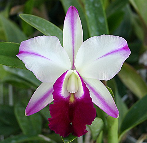 Cattleya Memoria Robert Strait orchid, near blooming size