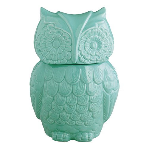 Aqua Blue Ceramic Owl Cookie Jar Storage Container