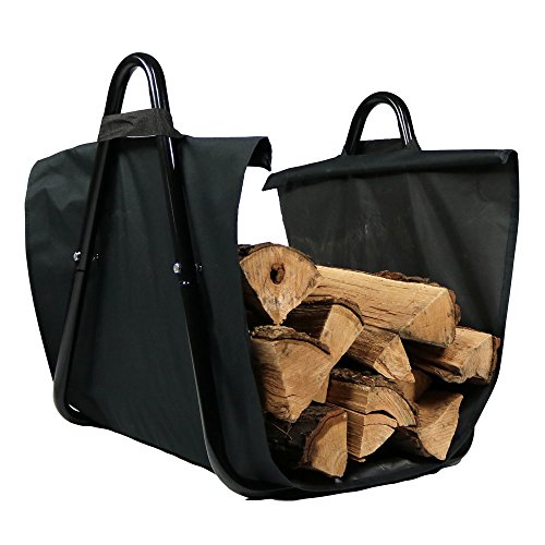 Sunnydaze Canvas Firewood Log Carrier with Handles, Heavy-Duty Log Tote and Rack Included