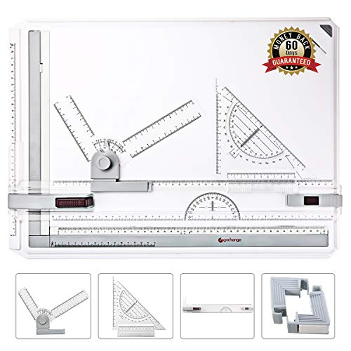 GOCHANGE Drawing Board, A3 Drawing Tool Set Multi-Funtion Drawing Board Table Graphic Architectural Drawing Board With Clear Rule Parallel Motion And Adjustable Measuring System Angle