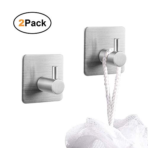 2PCS Wall Hooks for Bathroom Door Hanger Hanging 3M Adhesive Command Hooks Heavy Duty Wall Mount Clothes Hangers Stainless Steel Single Robe Hook set of 2