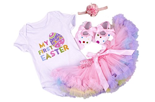 AISHIONY 4PCS Baby Girl Newborn My 1st Easter Egg Tutu Onesie Outfit Skirt Dress