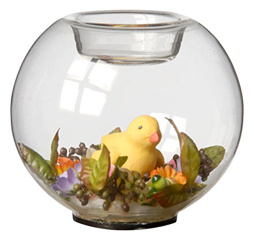 National Tree Set of 4 4 Inch Glass Candle Holders with Bunny and Mini Flowers (RAE-D030117-1)
